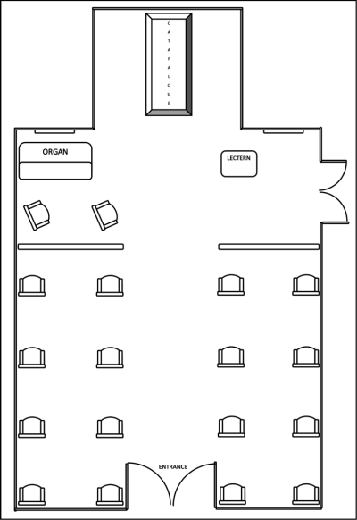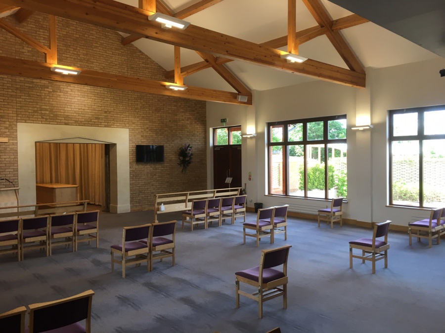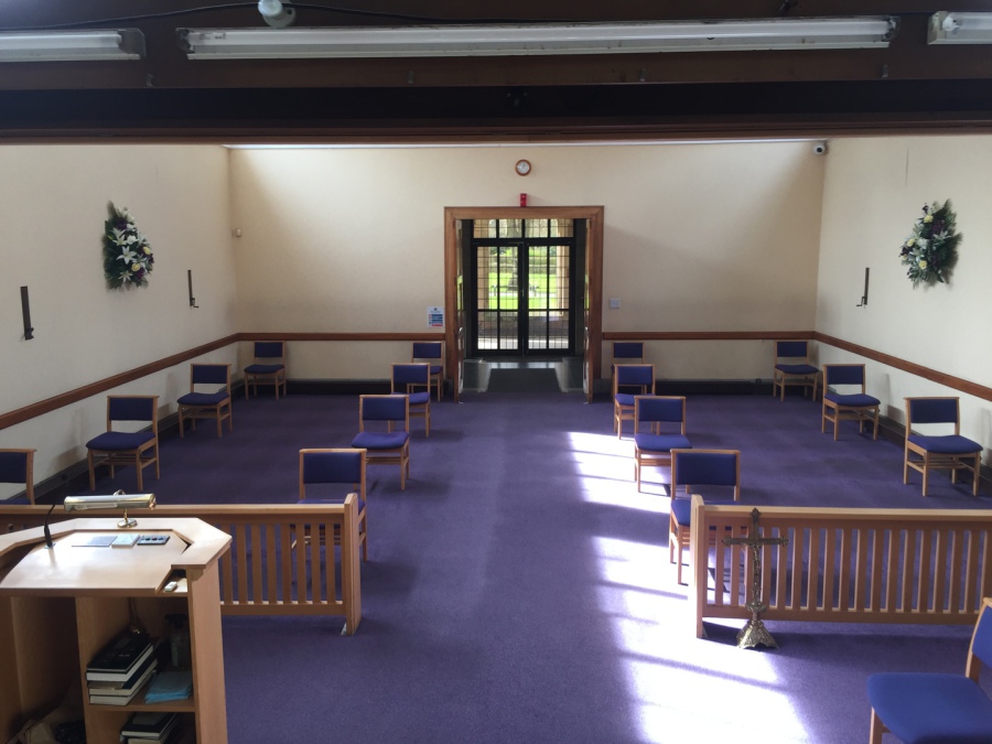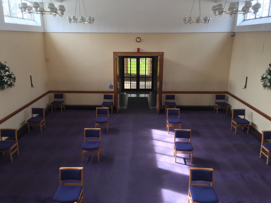 Below are images taken within our different local Crematoria and the maximum seating for an attended funeral service. This could change at any time to no attended services if the demand for the crematoria is too high or if attendees do not adhere to the guidelines set by the local council and Government.